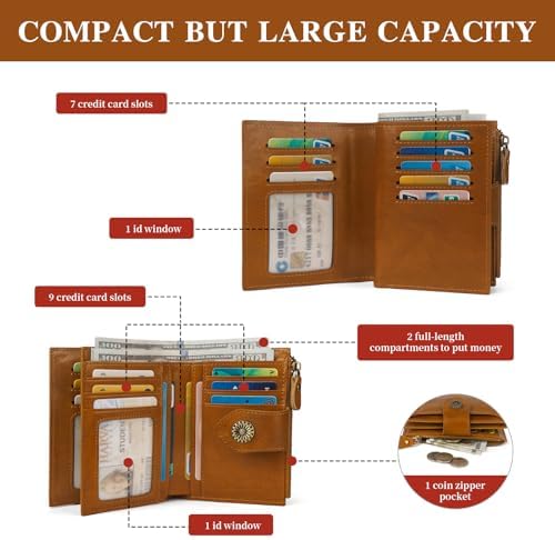 Sponsored Ad - Wallet Women,Rfid Blocking Leather Womens Wallet,Bifold Compact Carteras Para Mujer Card Holder with Removable ID Window(brown)