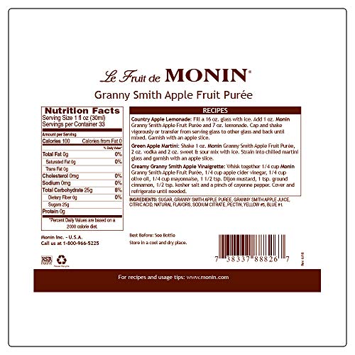 Granny Smith Apple Puree, Tart and Sweet, Great for Smoothies and Desserts, Gluten-Free, Non-GMO (1 Liter), 33.81 Fl Oz