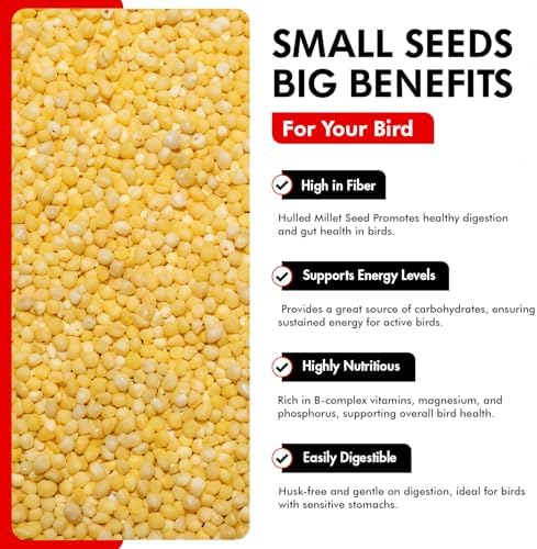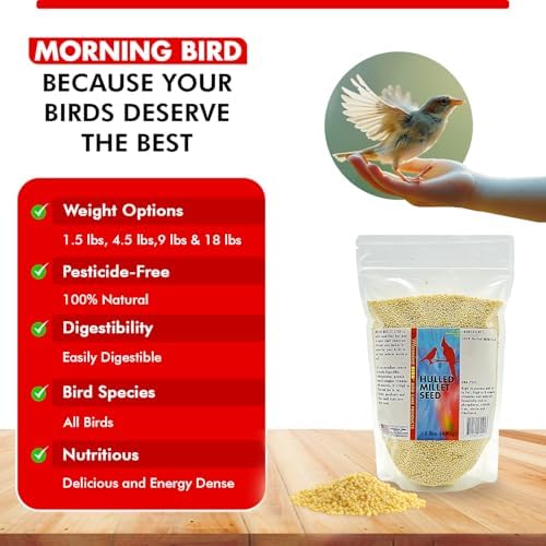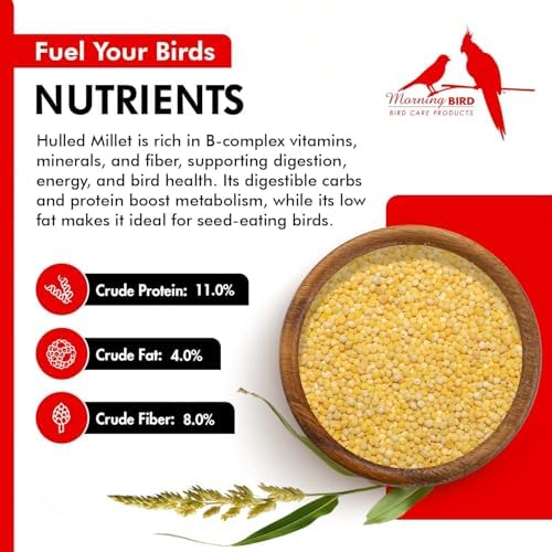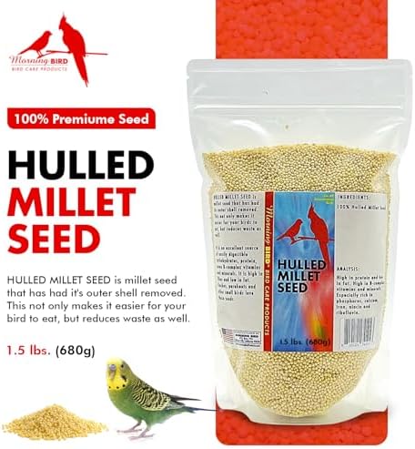 Morning Bird Hulled Millet 1.5 lb – Nutritious Hulled Millet Seed, Easily Digestible with High Fiber, Rich in Vitamins and Supplements for Birds, Ideal Bird Feed for All Bird Types.