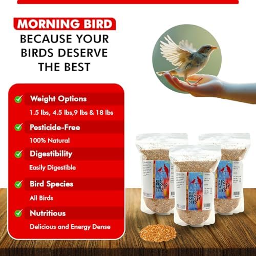 Morning Bird Red Proso Millet Bird Seeds 4.5 lbs (3-Pack, 1.5 lbs Each) – Healthy & Nutritious Pet Bird Food - Bird Seeds for Feather Growth – Perfect for Finches, Parakeets & Other All Pet Birds