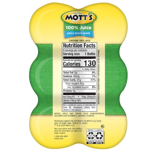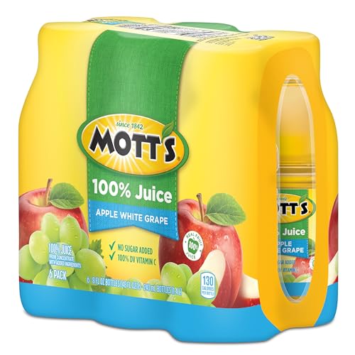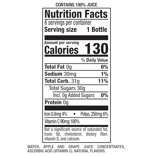 100% Apple White Grape Juice, 8 Fl Oz Bottles, 24 Count (4 Packs Of 6), No Added Sugar, Excellent Source Of Vitamin C, 2 Servings Of Fruit Per Bottle, Gluten & Caffeine Free, On-the-go