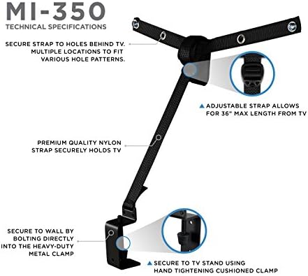 Mount It! TV Safety Straps For Child and Baby Proofing, Anti Tip Prevention and Earthquake Protection, Heavy Duty Metal Connectors, Secures to TV Stand and Walls, Black