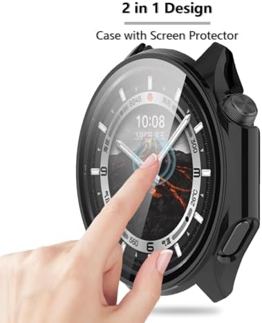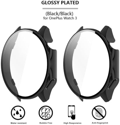 [2-Pack] Case with Tempered Glass Screen Protector Compatible with OnePlus Watch 3, Bumper Full Coverage Protective Hard PC Cases Face Cover for OnePlus Watch 3