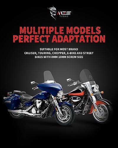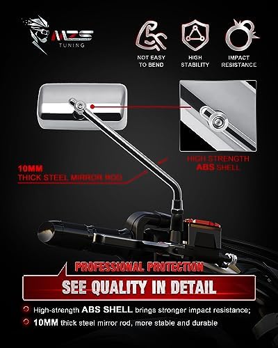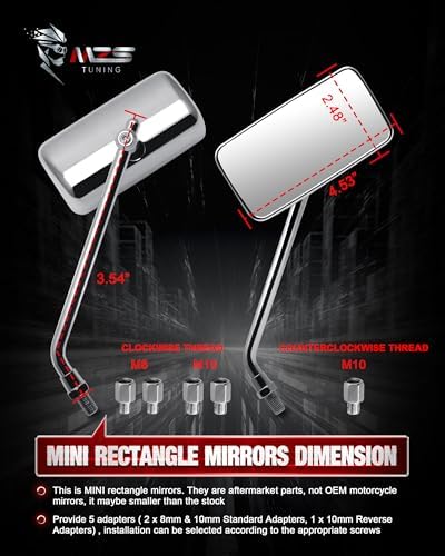 Sponsored Ad - Motorcycle Mirrors 10MM 8MM,Universal 360 Degree Adjustable Rear View Side Mirror Handlebar Mount Rectangle Chrome Suitable for Most Touring Cruiser Chopper Street Naked Road Bike Scoot