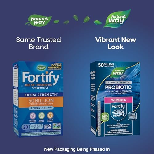 Nature’s Way Fortify Women’s 50 Billion Daily Probiotic Supplement, 10 Probiotic Strains, Digestive Health*, Immune Support*, Women’s Health*, Non-GMO, No Refrigeration Required, 30 Capsules