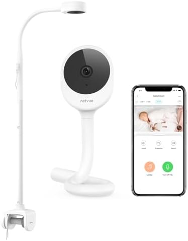 NETVUE Peekababy Baby Camera with Wireless Audio, Adjustable Crib Mount Monitor, Works via 2.4GHz Wi-Fi for Wide Coverage & Stable Connection, Smart App, Two-Way Talk (White)
