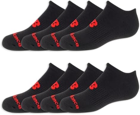 Sponsored Ad - Kids' Performance Cushioned No Show Socks-8 Pairs-Breathable Mesh Arch Support, Black (Red Logo), Shoe Size: 2-9