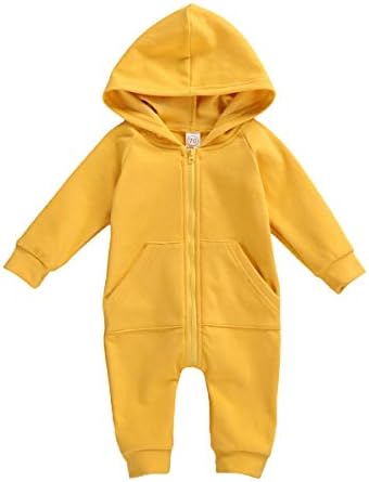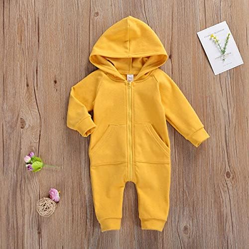 Newborn Baby Boy Girl Long Sleeve Romper Onesie Toddler Infant Fall Winter Zipper Hooded Clothes
