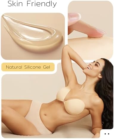 Niidor Adhesive Bra Strapless Sticky Invisible Push up Silicone Bra for Backless Dress with Reusable Nipple Covers