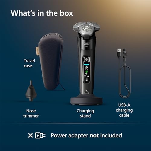 Philips Norelco Shaver i9000, Wet & Dry Electric Shaver, Ink Black, SenseIQ Technology, Triple Lift & Cut System, 360 Rotating Dual SteelPrecision Precision Blades, Nose Trimmer, Model X9000/90