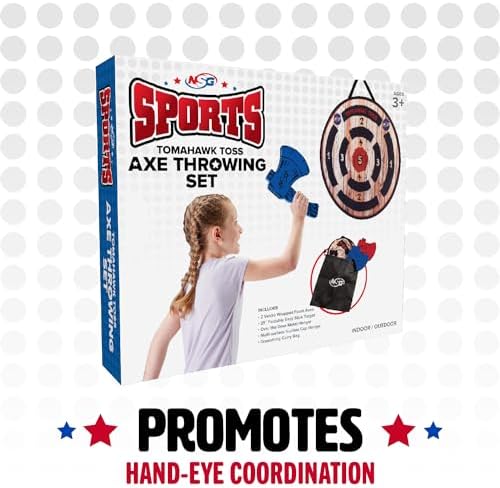 NSG Tomahawk Toss - Foam Axe Throwing Game for Kids - Two Lightweight Axes with Large Easy Stick Target, Wood/Black/red/Blue (JS7000)