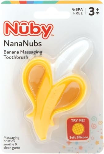 Nuby Nananubs Banana Massaging Teether – Baby Teething Toys 3 Months and Up, Silicone Teether for Sore Gums, Infant Toy, Baby Essentials, Brush, Travel Accessory, Gift for Babies