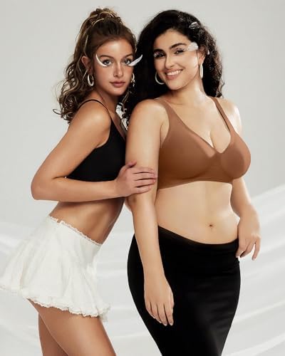OEAK Womens Deep V Bras Wireless Comfortable Bra Supportive No Underwire Bras Tshirt Push Up Bralettes Plunge Seamless Bra