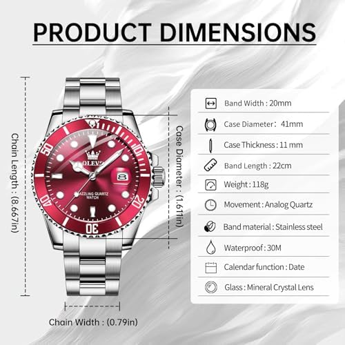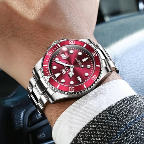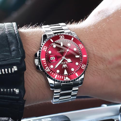 Watches Men Waterproof Luxury Big Face Mens Watch Stainless Steel Day Date Quartz Analog Dress Watches for Men Luminous Relojes De Hombre (Green/Blue/Black/Gold)