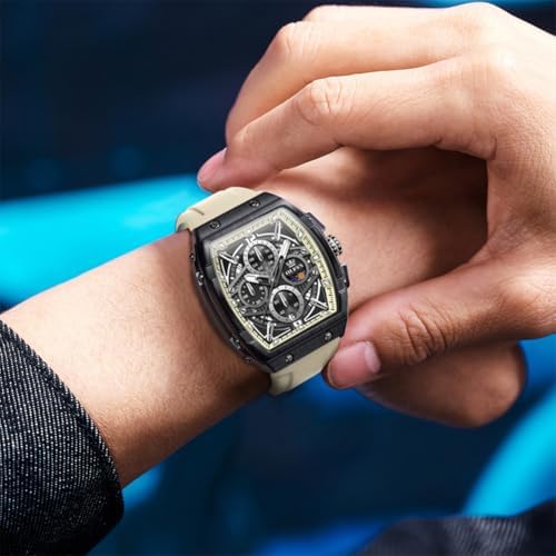 Sponsored Ad - Men Watches Business Dress Chronograph Big Square Quartz Analog Male Watch Silicone Strap Waterproof Date Gift Mens Wrsit Watch Silver