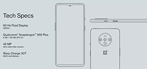 OnePlus 7T (128GB, 8GB) 6.55" AMOLED 90Hz Display, Snapdragon 855+, T-Mobile Unlocked Global 4G LTE GSM (AT&T, Metro, Cricket) (Glacier Blue) (Renewed)