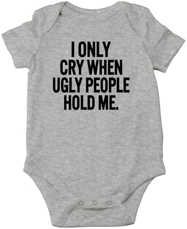 AW Fashions I Only Cry When Ugly People Hold Me Baby Bodysuit Funny Cute Baby Girl or Boy Outfit Romper