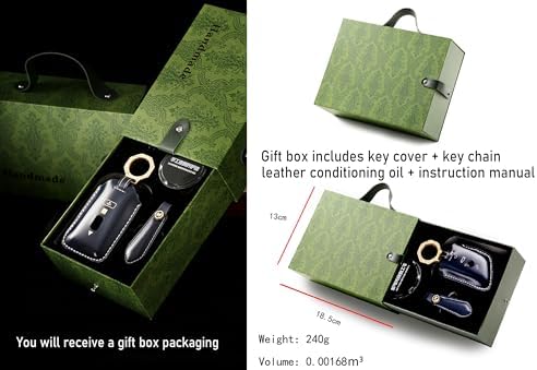 ontto Premium Leather Key Fob Case with Keychan Fit for Rolls-Royce Ghost RR4 Wrath RR5 Dawn RR6 Phantom Car Accessories Full Protection Blue