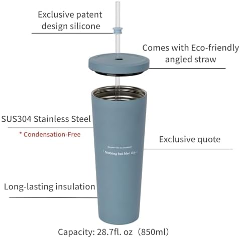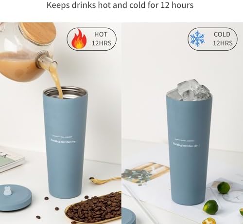 Sponsored Ad - Morandi 28 oz Stainless Steel Tumbler with Straw Vacuum Insulated Cup with Spill-Proof Lid Seal Double Wall Travel Mug for Hot and Cold Drinks (Straw Not Included) (Blue Ashes)