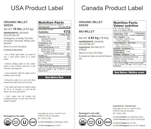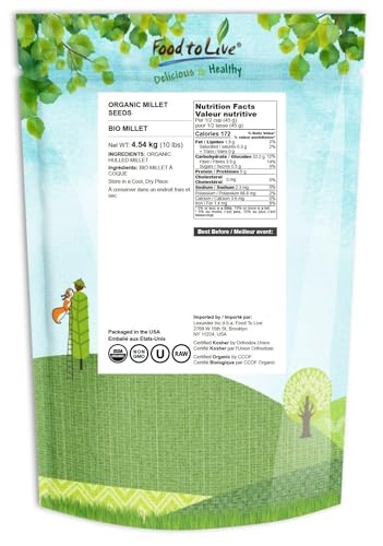 Food to Live Organic Hulled Millet, 10 Pounds – Whole Grain Seeds, Non-GMO, Kosher, Raw, Bulk, Product of the USA