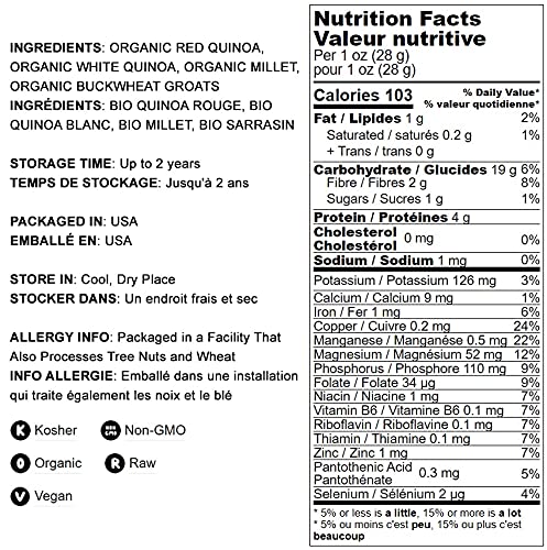 Food to Live Organic Super Grains Blend, 5 Pounds – A Mix of Millet, Buckwheat, Red and White Quinoa. Non-GMO, Non-Irradiated, Vegan Superfood, Bulk