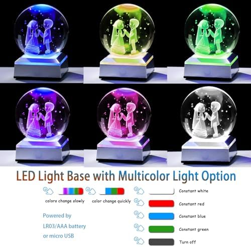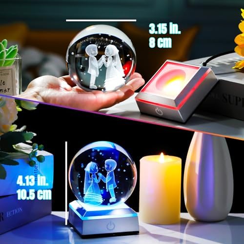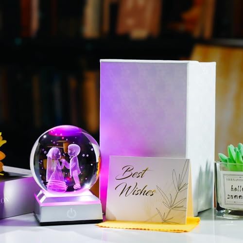 Sponsored Ad - 3D Crystal Ball Engraved Wedding Couples with LED Light Base 3.15'' - Gifts for Bride and Groom, Friend, Sister - Married Anniversary Presents for Partner Sweet Newlyweds Home Decor