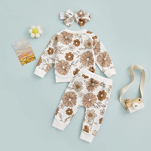 3Pcs Baby Girl Outfits Daisy Sweatshirt + Pants + Headband Infant Fall Winter Clothes