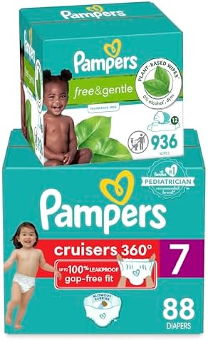 Pull On Cruisers 360° Fit Disposable Baby Diapers Size 7, One Month Supply (88 Count) with Free & Gentle Baby Wipes 12 Flip-Top Packs (936 Wipes Total)