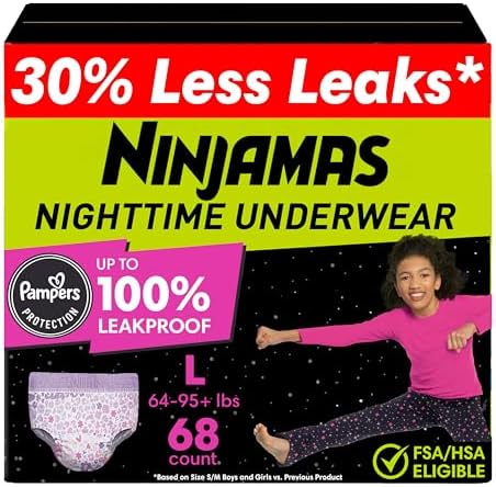 Sponsored Ad - Girls Bedwetting Nighttime Underwear, Pampers Pull Ups Size L (64-95+ lbs), 68 Count, Overnight Underwear Kids, Ultra Absorbent, Hypoallergenic