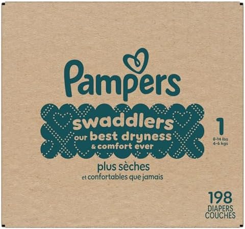 Pampers Swaddlers Diapers - Size 1, One Month Supply (198 Count), Ultra Soft Disposable Baby Diapers