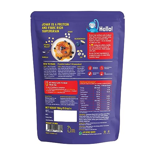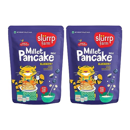 Slurrp Farm Millet Pancake Mix – Blueberry | No Maida or Refined Sugar | Oats, Jowar & Foxtail Millet for Wholesome Mornings | Healthy Kids Breakfast | 5.29 Oz (Pack of 2)