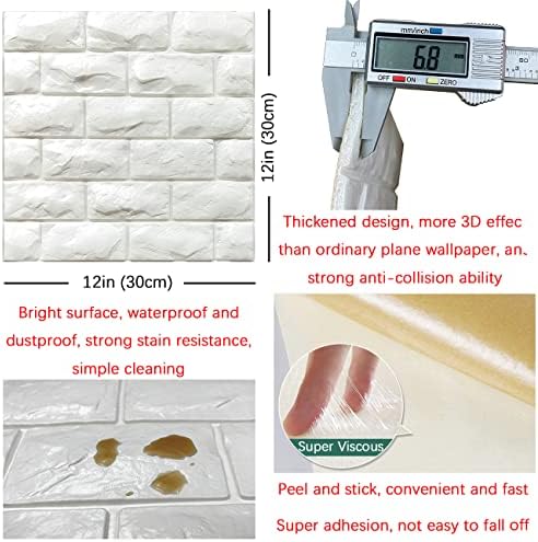Sponsored Ad - 3D Wall Panels Peel and Stick 11PCS White Foam Brick Wallpaper for Bedroom Faux Stone Wall Panel Self-Adhesive Wallpaper (11PCS-10.65 Sq Ft, White)