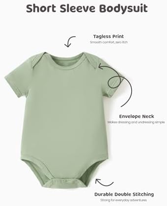 PATPAT Baby Bodysuits Supersoft Bamboo Viscose - Short Sleeve Boys and Girls - Newborn Infant Unisex Clothes Pack