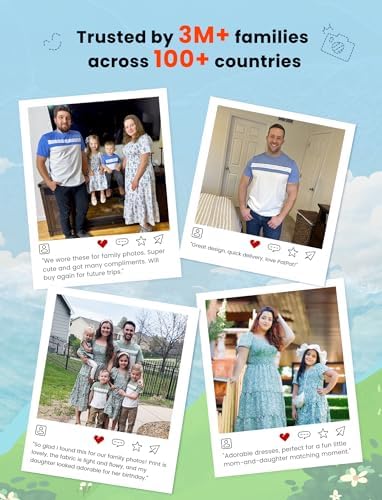 PATPAT Family Matching Outfits Boho Floral Print Square Neck Puff Sleeve Smocked Dress and Short Sleeve T-Shirts Matching Set