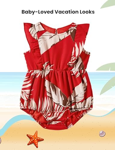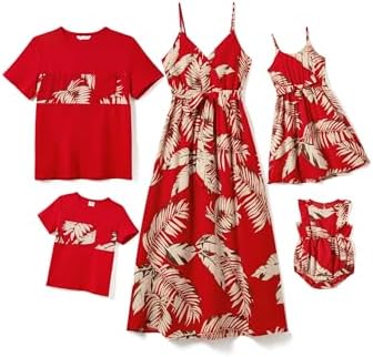 PATPAT Family Matching Outfits Mommy and Me Dresses Hawaiian Tropical Vacation Beach Spaghetti Strap Dress and Shirt
