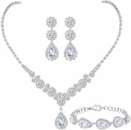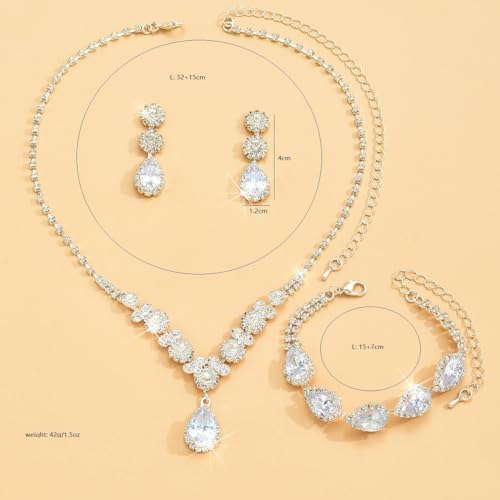 Silver/Gold Rhinestone Crystal Wedding Bridal Bridesmaids Earrings Bracelet Set for Women Brides Bridesmaids Crystal Rhinestone Bracelet Earrings Set for Wedding Bridal Prom Pageant