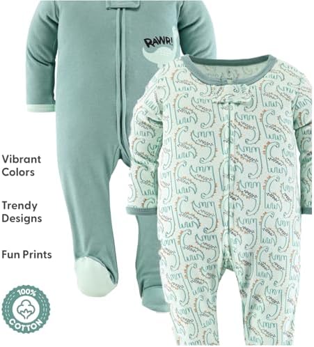 Sponsored Ad - Baby Sleepers for Boys Set of 3 - Soft Cotton Footed Pajamas for Newborns & Infants - Green Dino