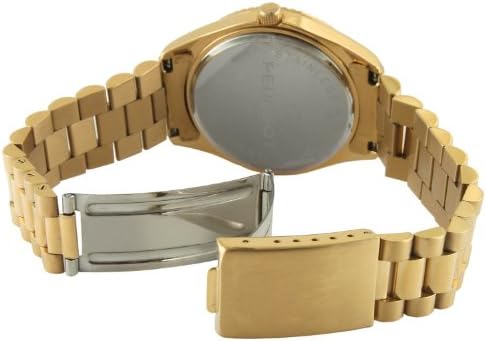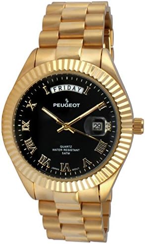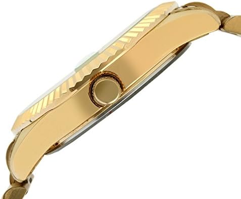 14K All Gold Plated Big Face/Stainless Steel Big Face Luxury Watch with Day Date Windows, Roman Numerals & Coin Edge Fluted Bezel Watch