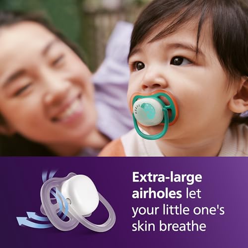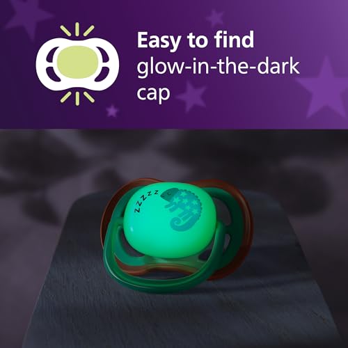 Philips Avent Ultra Air Nighttime Pacifiers - Orthodontic Design, for Babies 6-18 Months, Glow in The Dark, Soft Silicone Symmetrical Nipple, BPA-Free, with 2 Sterilizing Cases, 4 Pack, SCF376/36