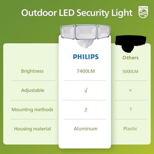 72W 7400LM LED Flood Lights Outdoor, Switch Controlled Aluminum Security Lights, 3 Adjustable Heads, Wall Mount, 5000K Daylight, Waterproof for Yard, Garage
