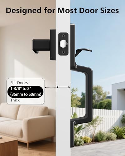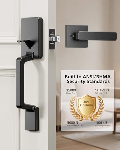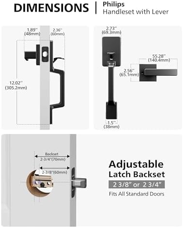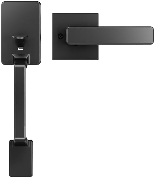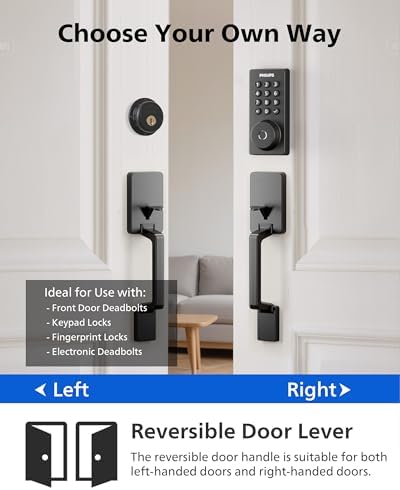 Front Door Handle No Lock, Entry Handleset Exterior with Interior Handed Lever, Modern Front Door Handle,Deadbolt Not Included, Matte Black