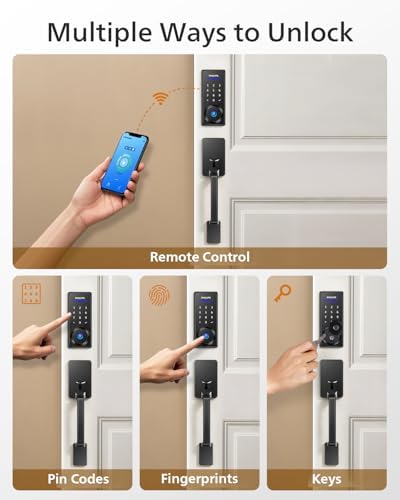 Sponsored Ad - Wi-Fi Smart Lock with Handle, Keyless Entry Keypad Door Lock with Handle, Front Door Deadbolt Set with WiFi Gateway, App Control, Fingerprint Unlock, PIN Code Unlock, Auto Locking
