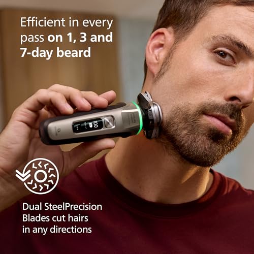 Sponsored Ad - Philips Norelco Shaver i9000 Prestige - Wet & Dry Electric Shaver, Gold Oyster, Sense IQ Technology, Triple Lift & Cut System, 360 Rotating Dual SteelPrecision Blades, Quick Clean Pod,