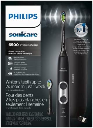ProtectiveClean 6500 Rechargeable Electric Toothbrush, with Pressure Sensor, 3 Cleaning Modes, SmarTimer and QuadPacer, 14-Day Battery Life, Charging Travel Case, Black, HX6462/08