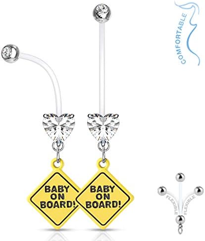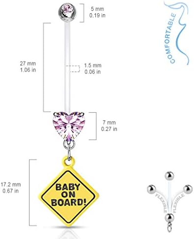Pierced Owl - Double Jeweled Heart Baby on Board Dangle Pregnancy Maternity Belly Button Ring Retainer