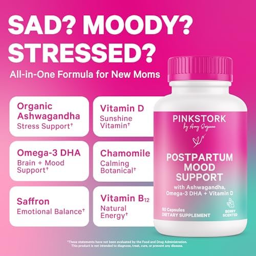 Sponsored Ad - Pink Stork Postpartum Mood Support - Postnatal Hormone Balance for Women - Breastfeeding Friendly - Stress & Cognitive Support, New Mom Essentials - Ashwagandha, Chamomile, & Vitamin D,