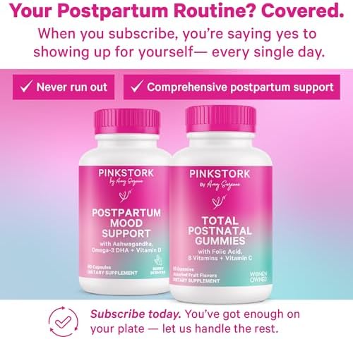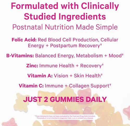 Sponsored Ad - Pink Stork Total Postnatal Vitamin Gummies - Multivitamin for Postpartum Recovery and Lactation Support - Folic Acid, B6, & Vitamin C - Breastfeeding Essentials - 60 Gummy Vitamins