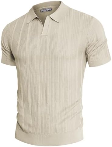 Mens Polo Shirts Regular Fit Textured V-Neck Knit Golf Polos