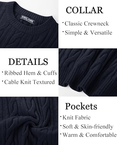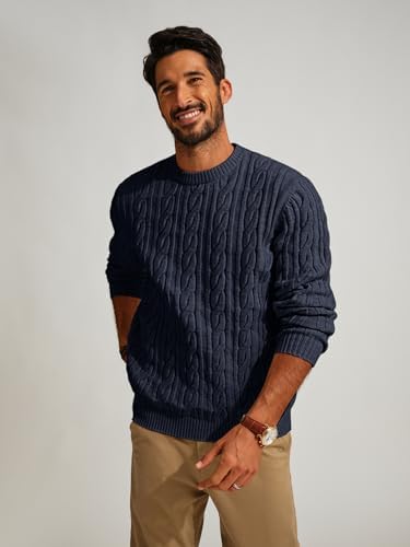 Sponsored Ad - Mens Sweater Crewneck Cable Knit Pullover Sweater Casual Twist Textured Sweaters