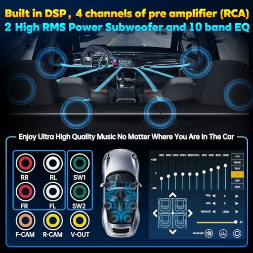 7" Wireless Double Din Car Stereo Apple Carplay Radio Screen for Car Audio Receivers, Bluetooth 5.3 Car Play Android Auto Touchscreen, 240W 4.2 CHN 2 Subwoofers Outputs, Backup Camera, SWC, FM/AM